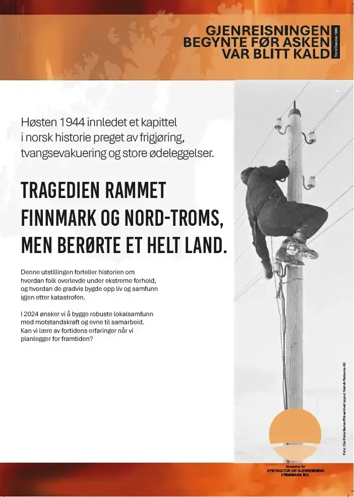 Utstillingen tar utgangspunkt i Ninas Planting Mølmanns doktorgrad om livsvilkårene for overvintrerne i Finnmark i 1944, og MKGF og Gjenreisningsmuseet for Nord-Troms og Finnmark sitt arbeid med historien om okkupasjon, motstand, brenning, tvangsevakuering og gjenreisning.